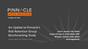 Pinnacle team members Erich Brandt, Greg Fears, Brittany Henrich and Steve Jagodzinski will provide year-end 2022 updates to our annual Risk Retention Group Benchmarking Study. The group will do a deep-dive into the current state of RRGs, including a look at industry-level RRG financial statement data with trends and comparisons to the admitted market.